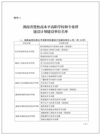 获批湖南省楚怡高水平高职专业群建设计划建设单位A档3个