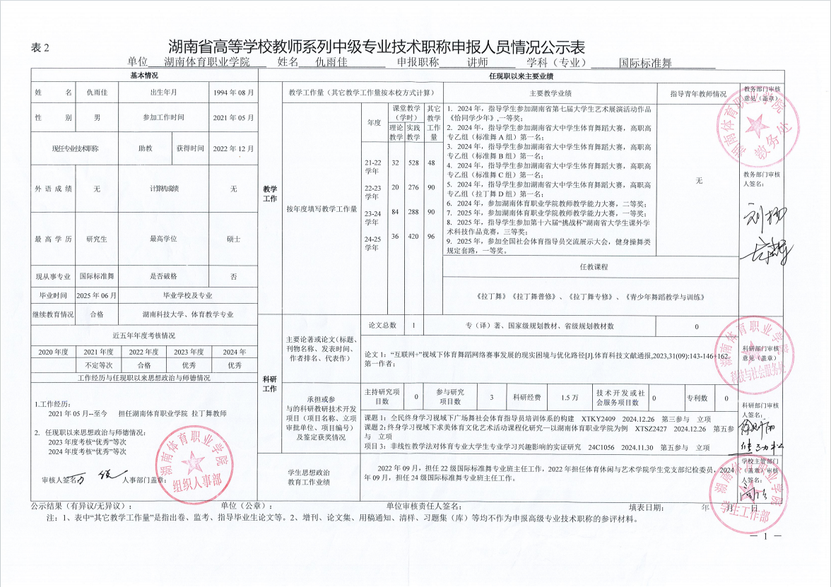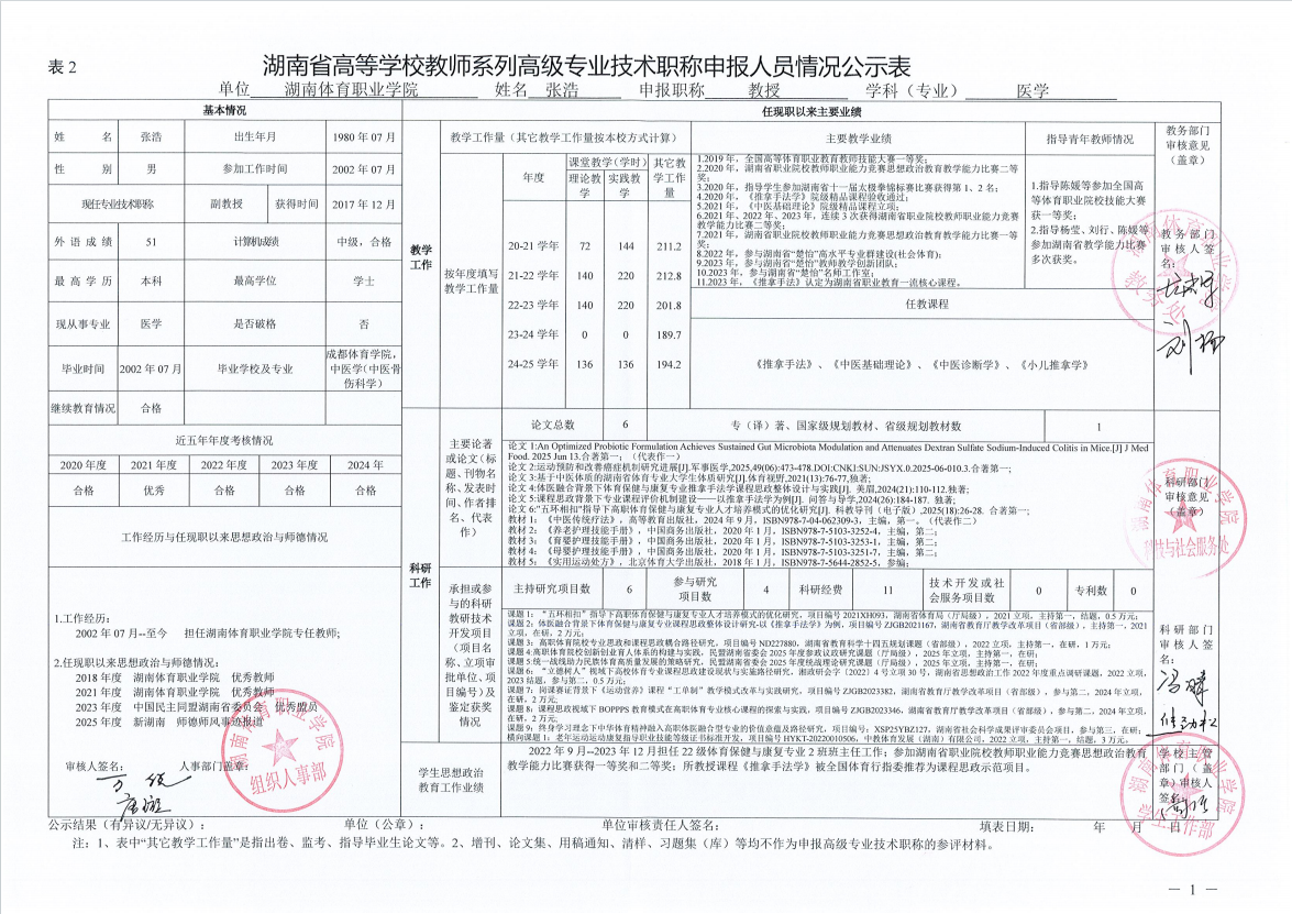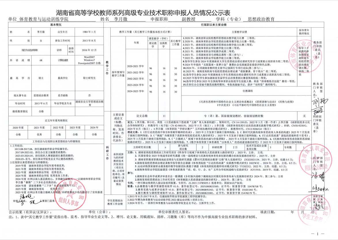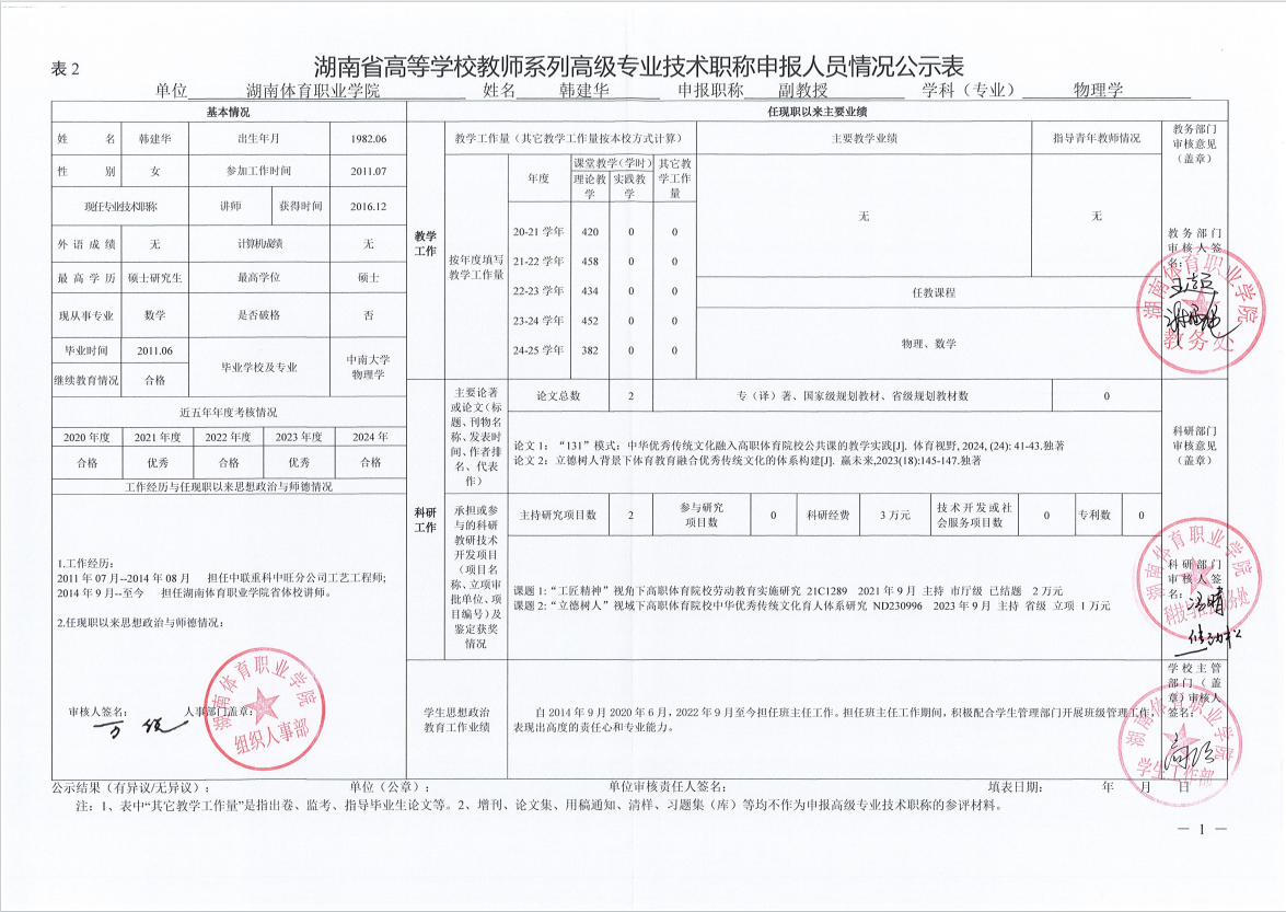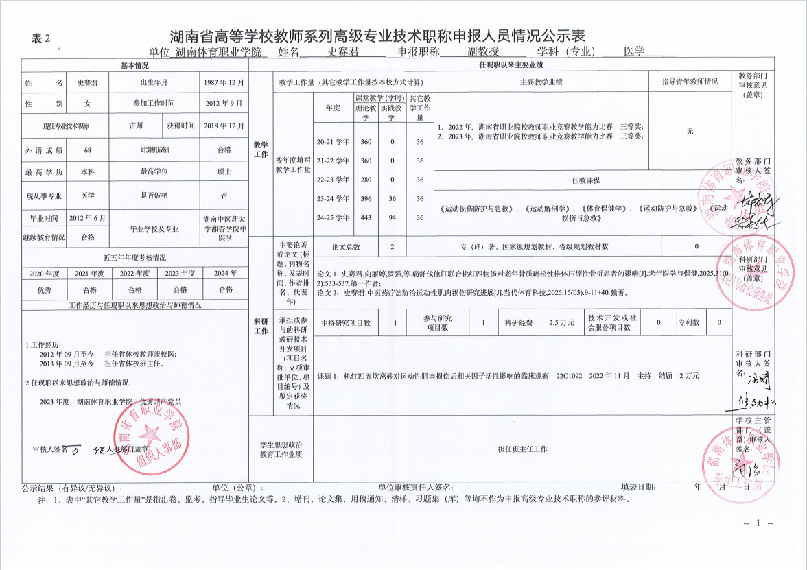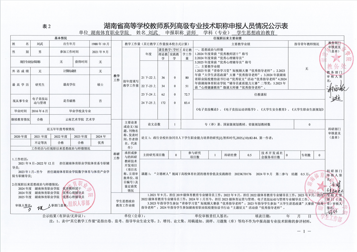 根据湖南省教育厅、湖南省人力资源和社会保障厅《关于做好2025年度全省高级职称评审工作的通知》(湘人社函〔2025〕29号)、《高校教师系列专业技术职称评审改革工作实施办法》(湘体职院职改字〔2022〕9号)、《2025年高校教师系列专业技术职称评审工作方案》(湘体职院职改字〔2025〕10号)等文件要求,经个人申报、部门推荐、资格审查委员会和测评考核委员会审核等程序,现将2025年度学院申报高校教师系列职称评审的人员情况予以公示,公示期为5个工作日,自2025年10月14日起至2025年10月20日止。
